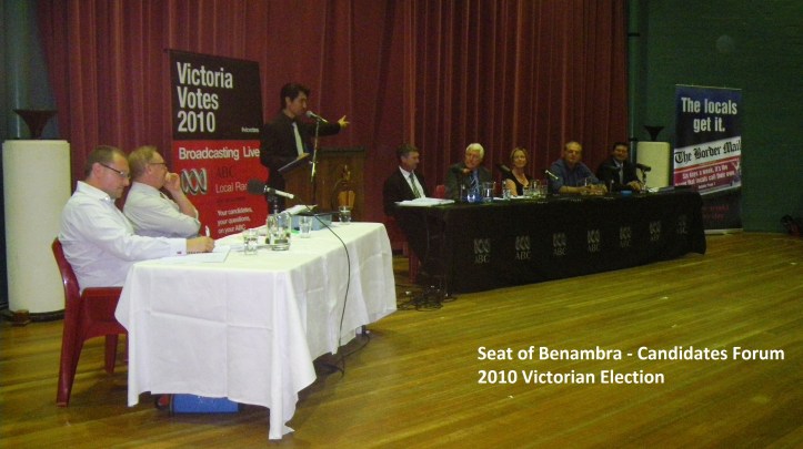 Citizen engagement is an integral feature of a vibrant democracy. Our politicians often pay lip service to the strength of our political system, but it takes active participation from everyday people like you and I to make true democracy a reality. Public events such as the Benambra candidates forum are vital to the democratic process as a means of surveying the broad range of view in the community (yes, there’s more to Australian politics than the Liberals and the ALP) and as a means of keeping our elected officials accountable. It now falls to you, the voter, to cast your vote intelligently and strategically to advance not only your personal interests, but the well-being of the entire community. All the best on election day, don’t take your vote for granted.