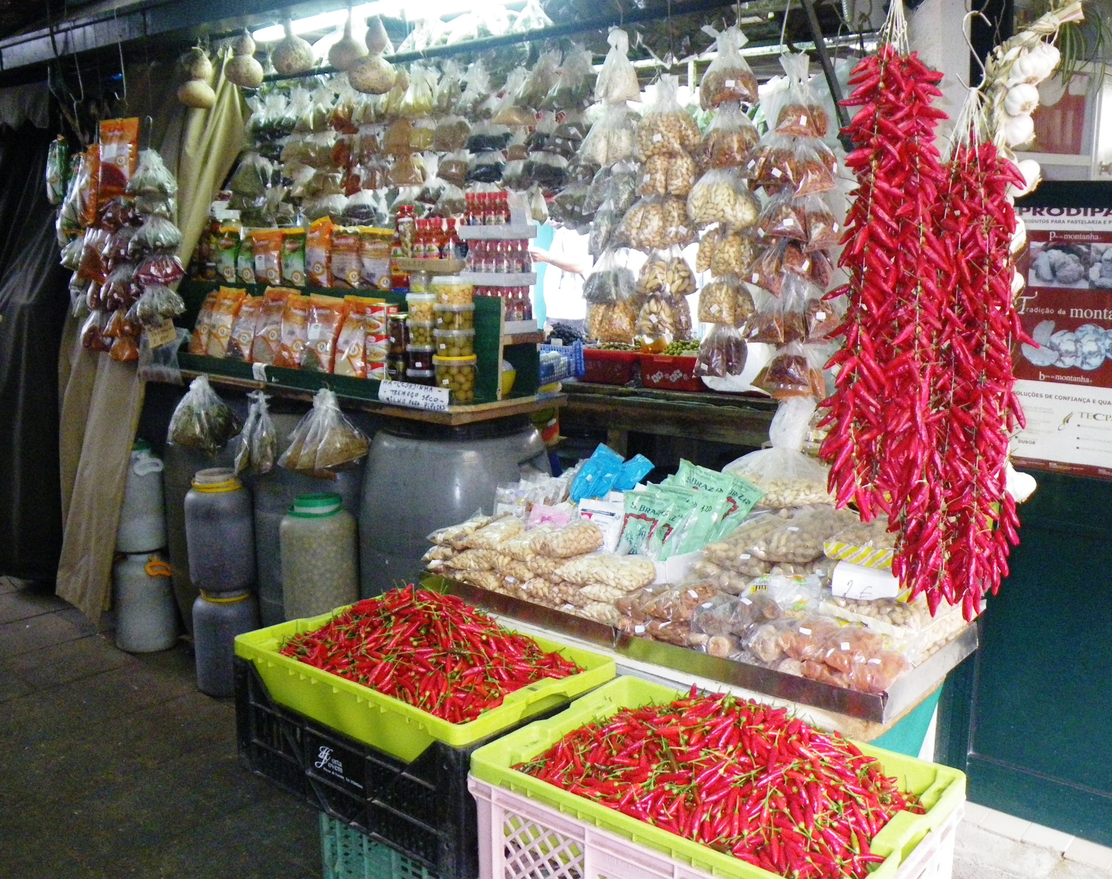 January 19, 2012 Dr Benjamin Habib Chilli and garlic on sale in the Mercado do Bolhao, two vital ingredients in Portuguese cooking.
