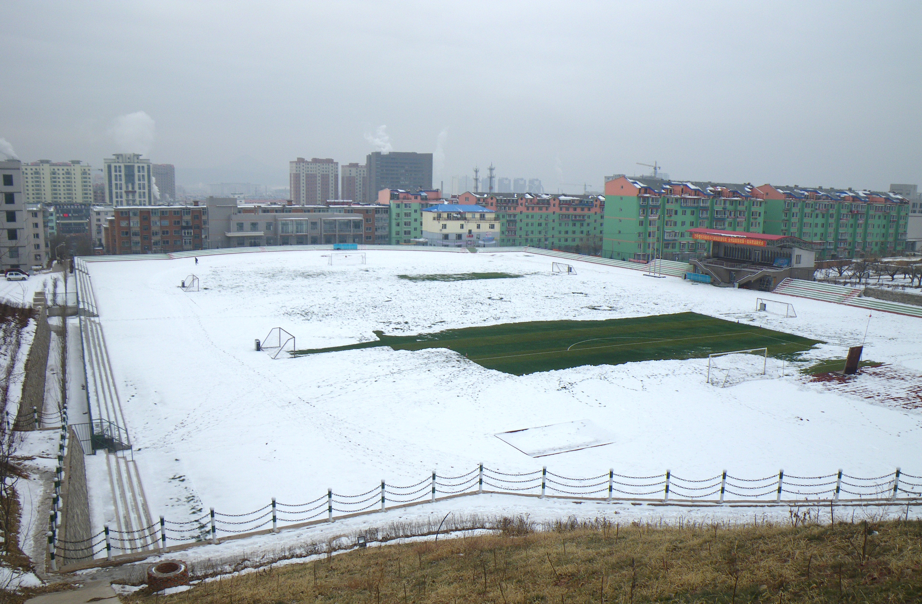 January 20, 2012 Dr Benjamin Habib Another artifact of the intense winter cold, the main football pitch at Yanbian University is covered with astroturf because ordinary grass would die off in the winter.