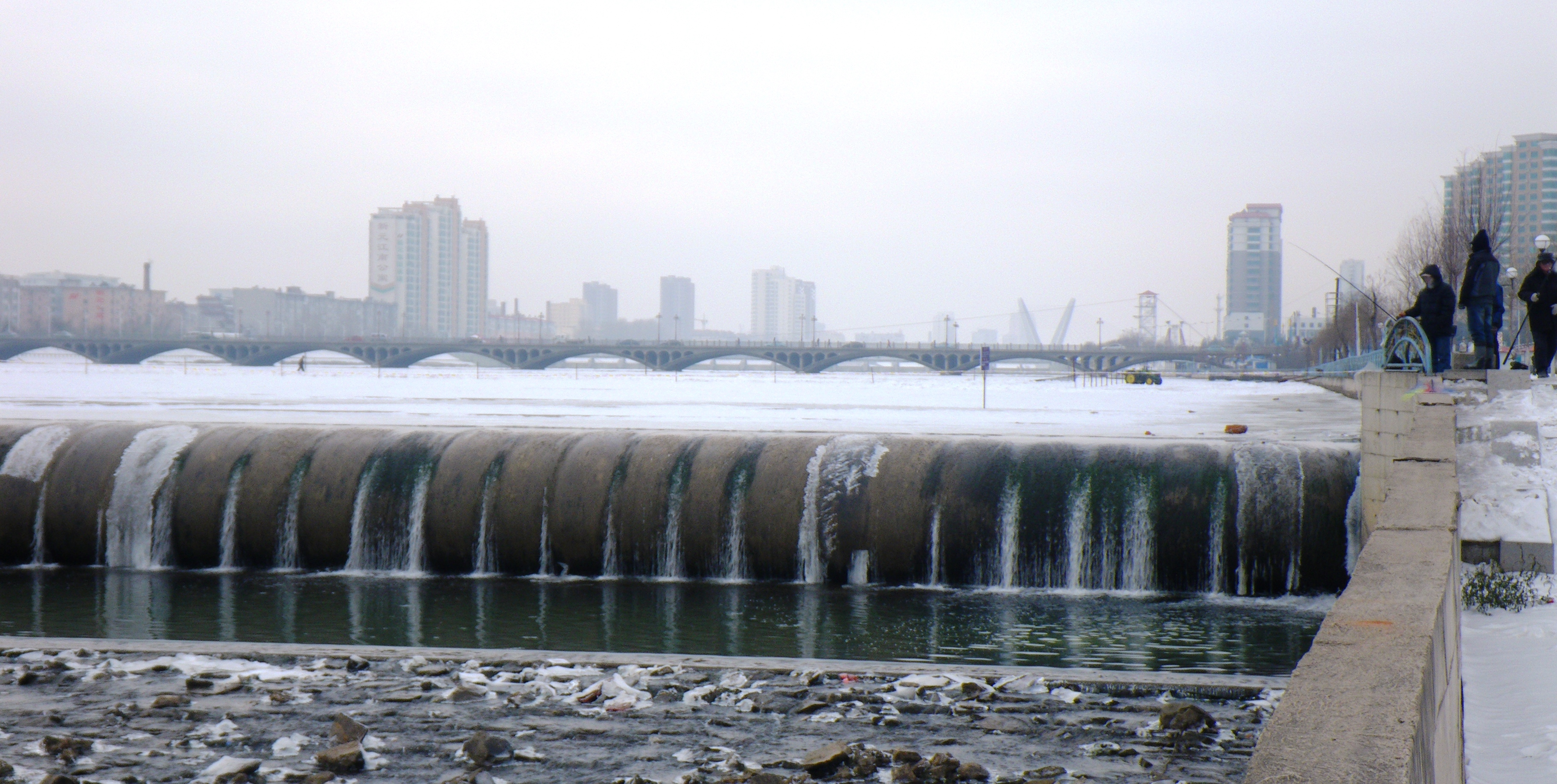 January 20, 2012 Dr Benjamin Habib A wier across the Bu’er Hatong River. Notice the men on the right fishing in the open pool created by the running water.