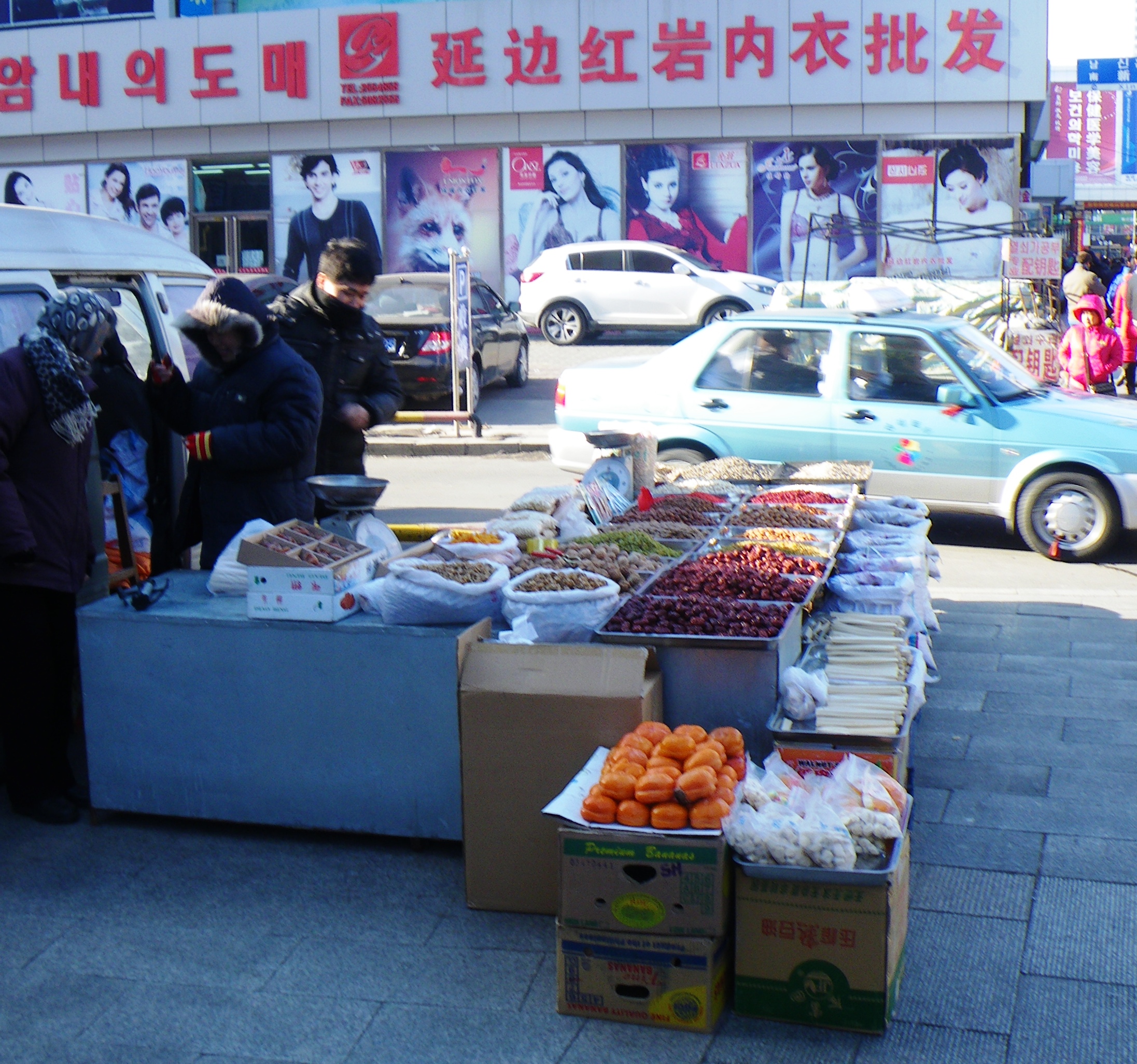 Street vendor in central Yanji selling nuts and legumes.