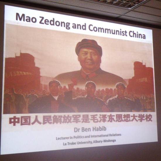 On Thursday March 1st, 2012, braving torrential rain, Victory Lutheran College VCE history students, led by their teacher Logan Hayward came to La Trobe University Albury-Wodonga campus for a workshop presented by myself on Mao Zedong and the Communist Party. The workshop was a supplement to the students’ VCE History studies on the Chinese revolution.