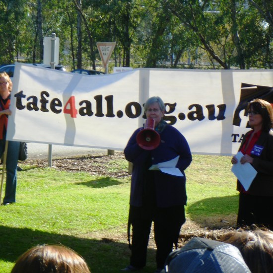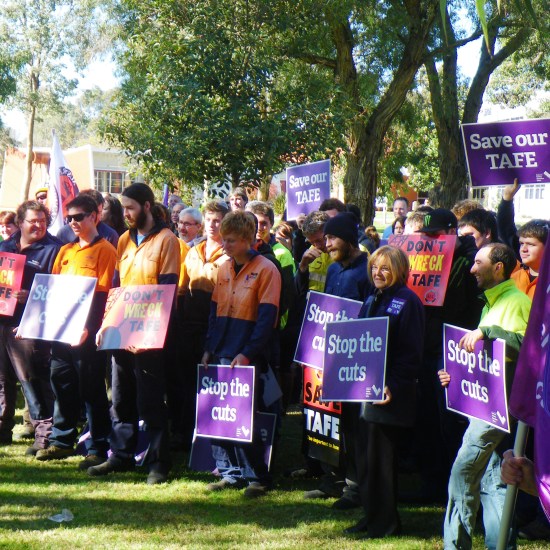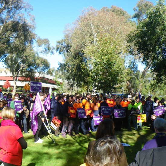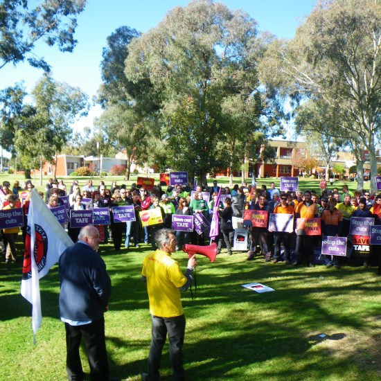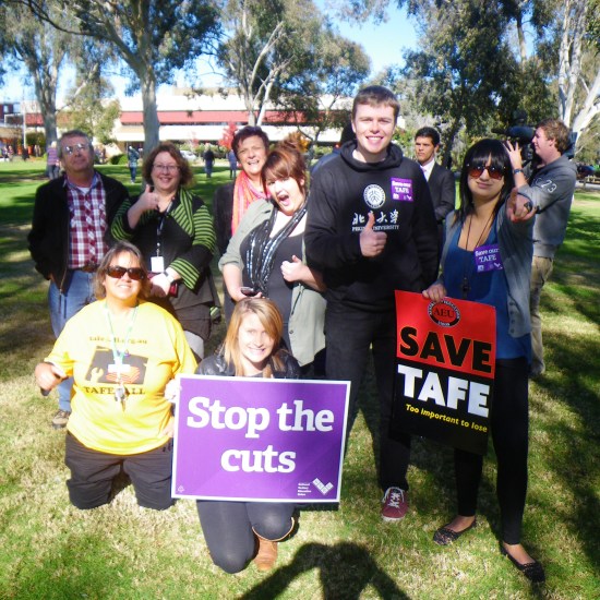 Staff and students from La Trobe University attended yesterday’s rally (Tuesday 29th June 2012) in support of our colleagues at Wodonga TAFE, in protest over the Baillieu government’s drastic thirty percent funding cut to Victorian TAFE institutions.