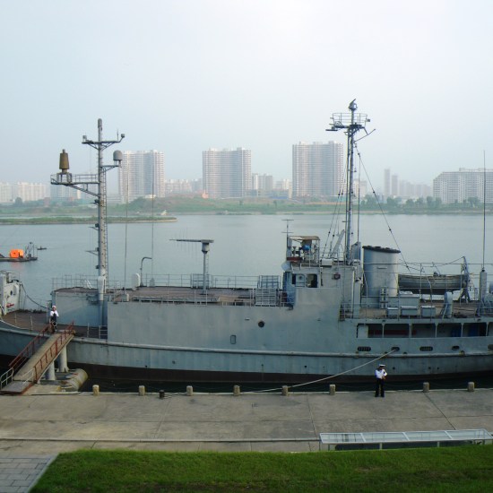 The USS Pueblo, the American reconnaisance ship captured by North Korea in 1968. It now sits anchored on the Taedong River in Pyongyang