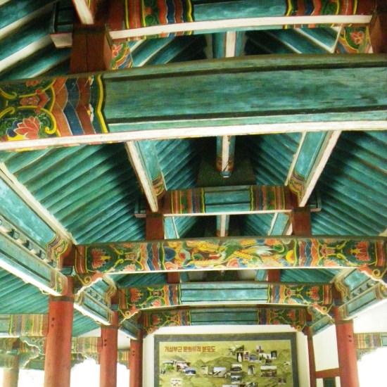 Fine detail within the Ryongwang Pavilion, near Taedongmun. The pavilion dates from the Koguryo period and although damaged during the Korean War, remains an important cultural landmark