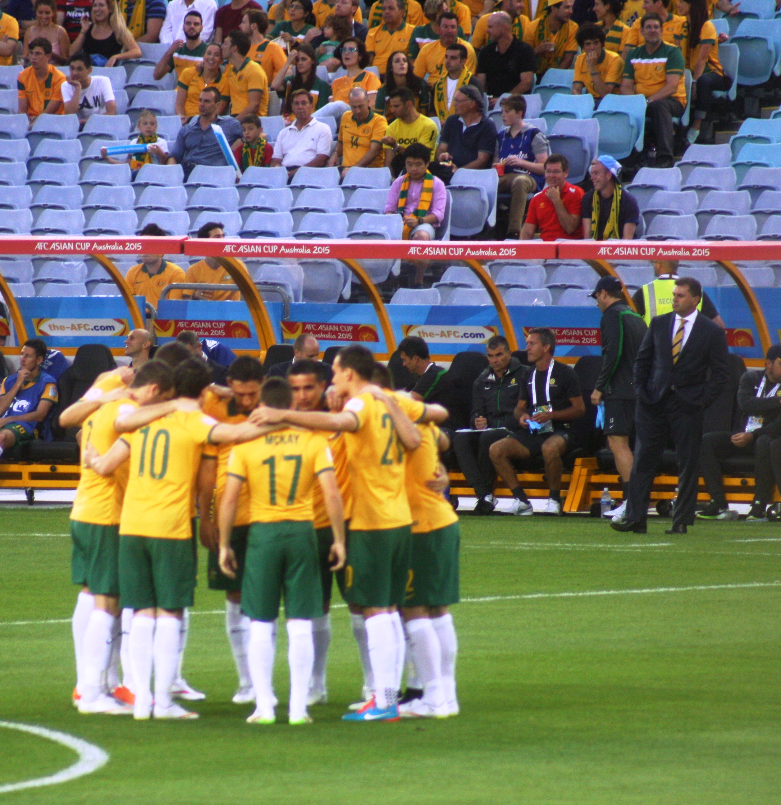 February 1, 2015February 1, 2015 Dr Benjamin Habib c. AUSvOMA_02_Socceroos huddle up as coach Ange Postecoglu looks on