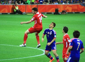 e. JORvJAP: Flying header by Jordanian defender