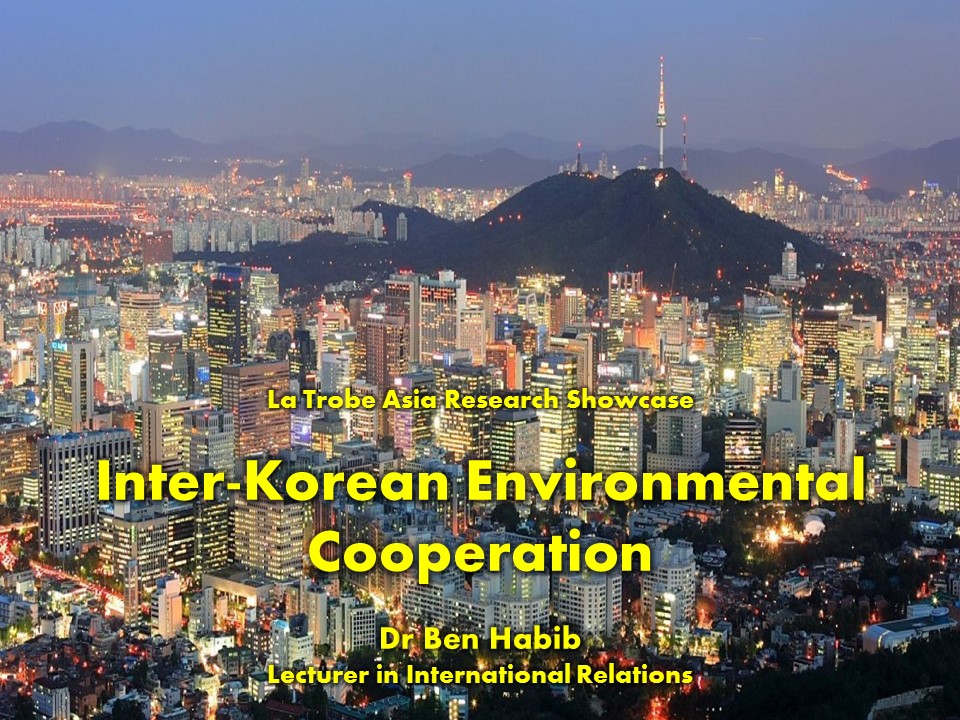 A special thank you to Professor Nick Bisley, Diana Heatherich and Matt Smith from La Trobe Asia for organising the Research Showcase event, in addition to their ongoing support for my work. Thanks go to my colleagues for sharing their outstanding research projects. A warm note of thanks also go to the Institute for Far Eastern Studies at Kyungnam University for hosting me during my visit to Seoul.