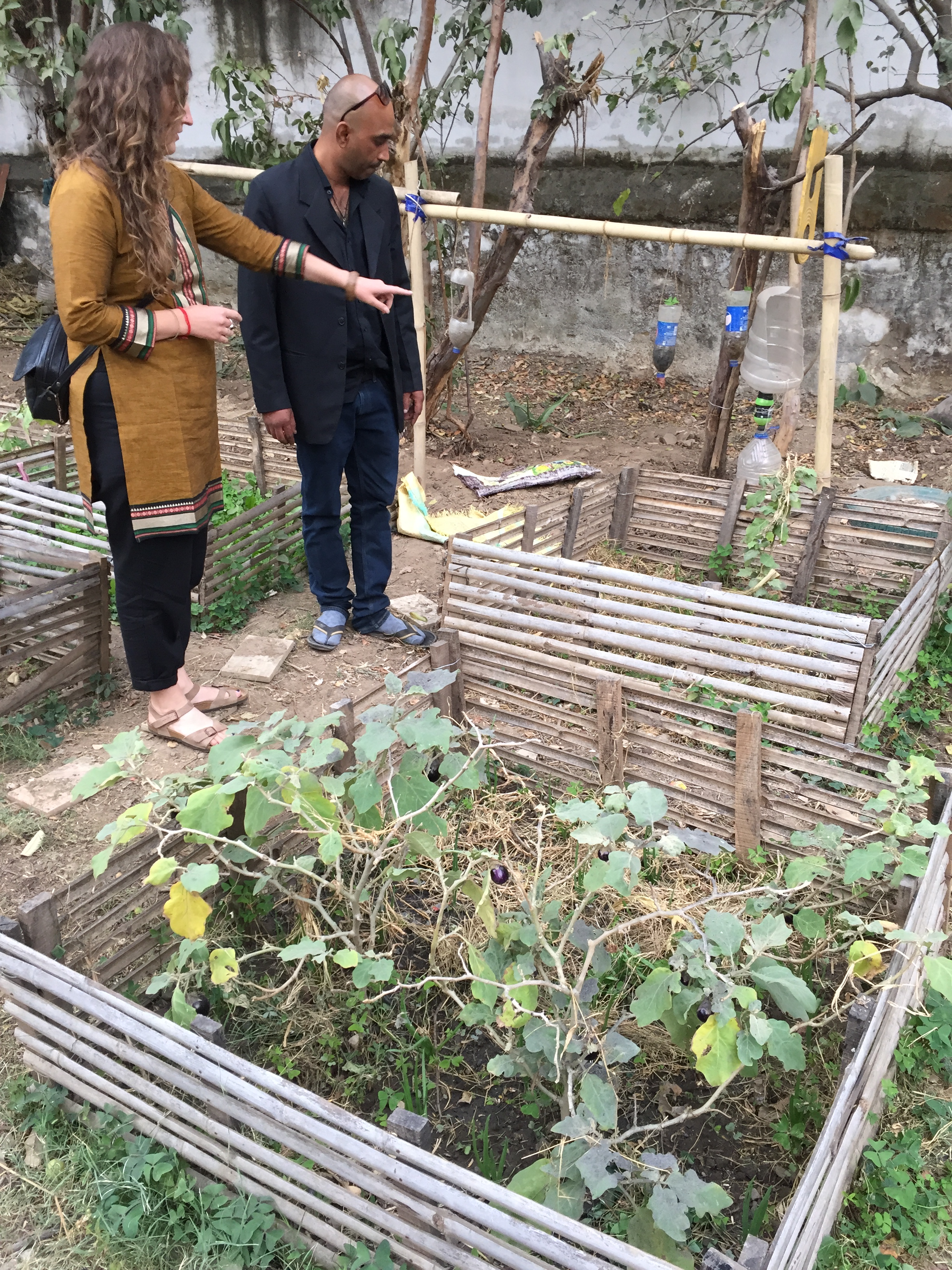 Inspecting the garden.