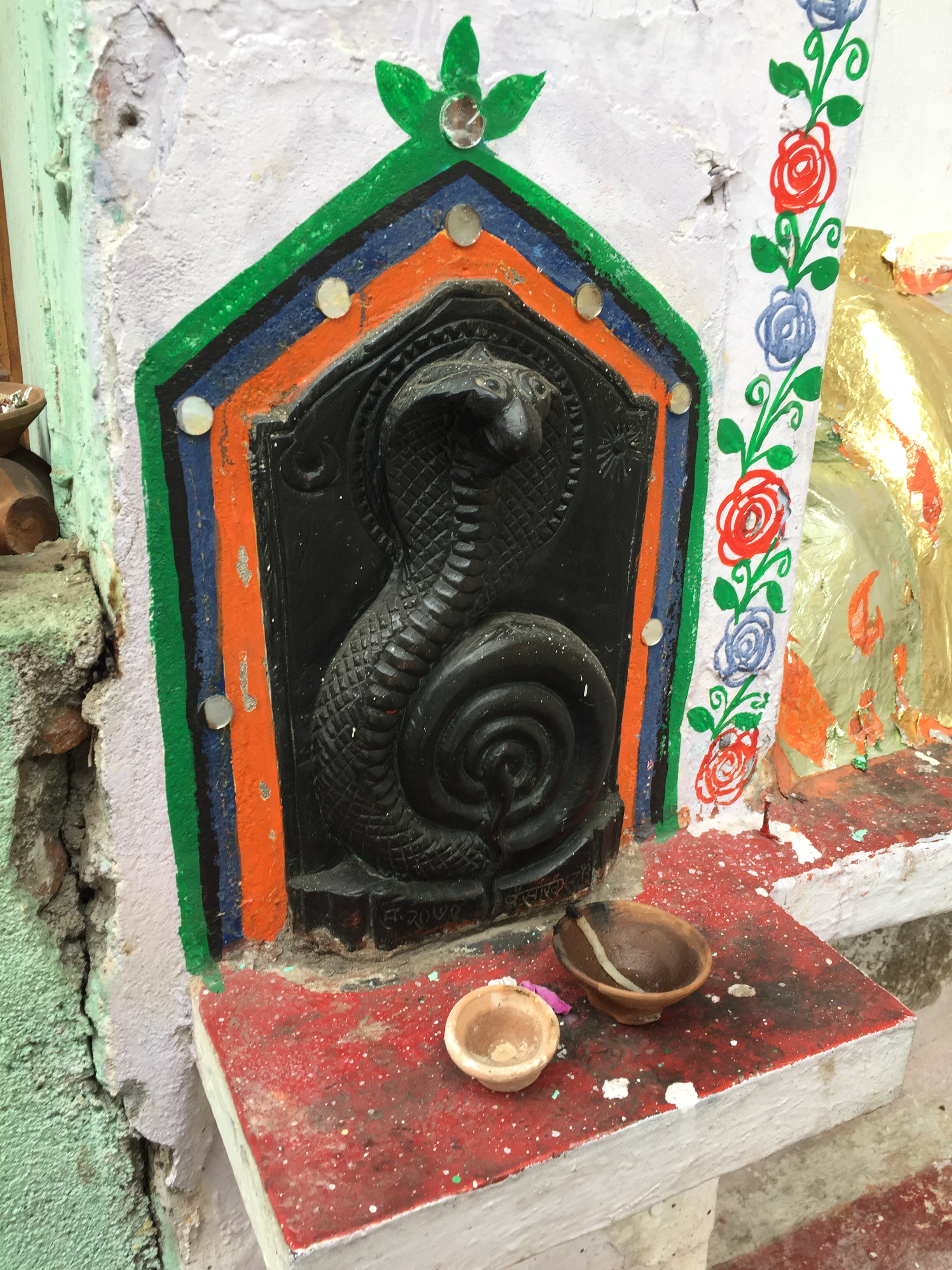 Small temple to Lord Shiva on a street wall.