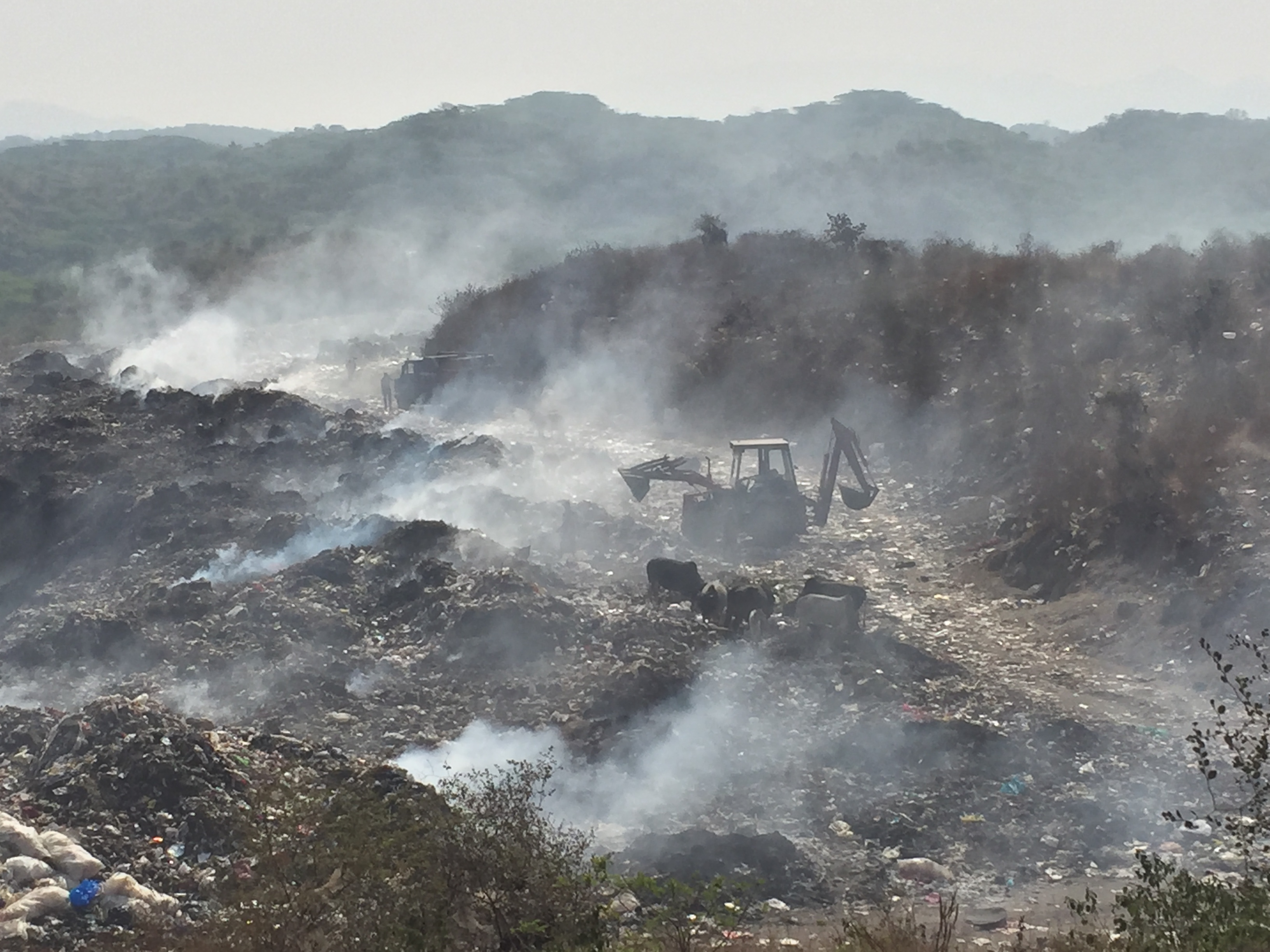 The Udaipur dump site resembled how I imagined Mordor to be when I first read Lord of Rings (before the movies came out). Tree-less mounds of fetid-smelling garbage, buzzing with flies, covered in a plume of haze from the methane fires burning at various places across the site. Sites like these produce significant amounts of highly-flammable methane gas through the anaerobic decomposition of the waste. As well as fueling smouldering fires across the site, methane is a more potent greenhouse gas than carbon dioxide.