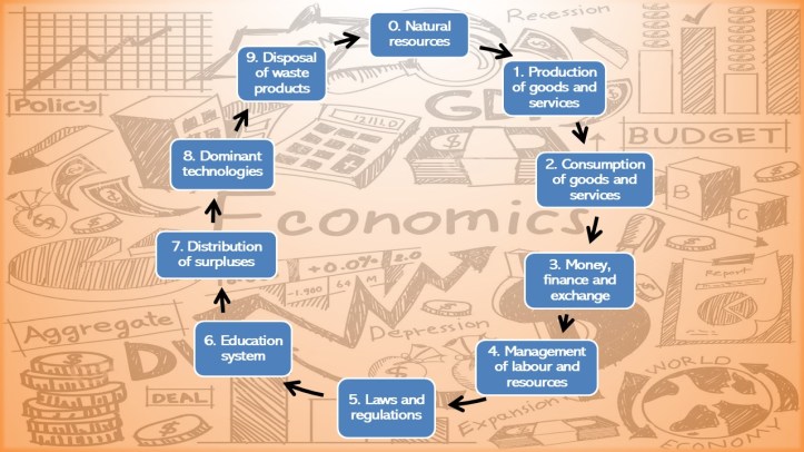 The list below is a heuristic framework documenting a series of ten different but inter-related structural features of political-economic systems. All political-economic systems have these structural features in one way or another, illuminating the interconnections between governance, ideology, and economic activity, revealing the deeply political nature of economic processes. In teaching my units on socio-economic permaculture in the Permaculture Design Course at CERES Community Environment Park in Melbourne, I encouraged participants to identify what each of these structural features look like in the capitalist economic system and identify permaculture-inspired interventions that might further Earth Care, People Care and Fair Share in the context of each element.