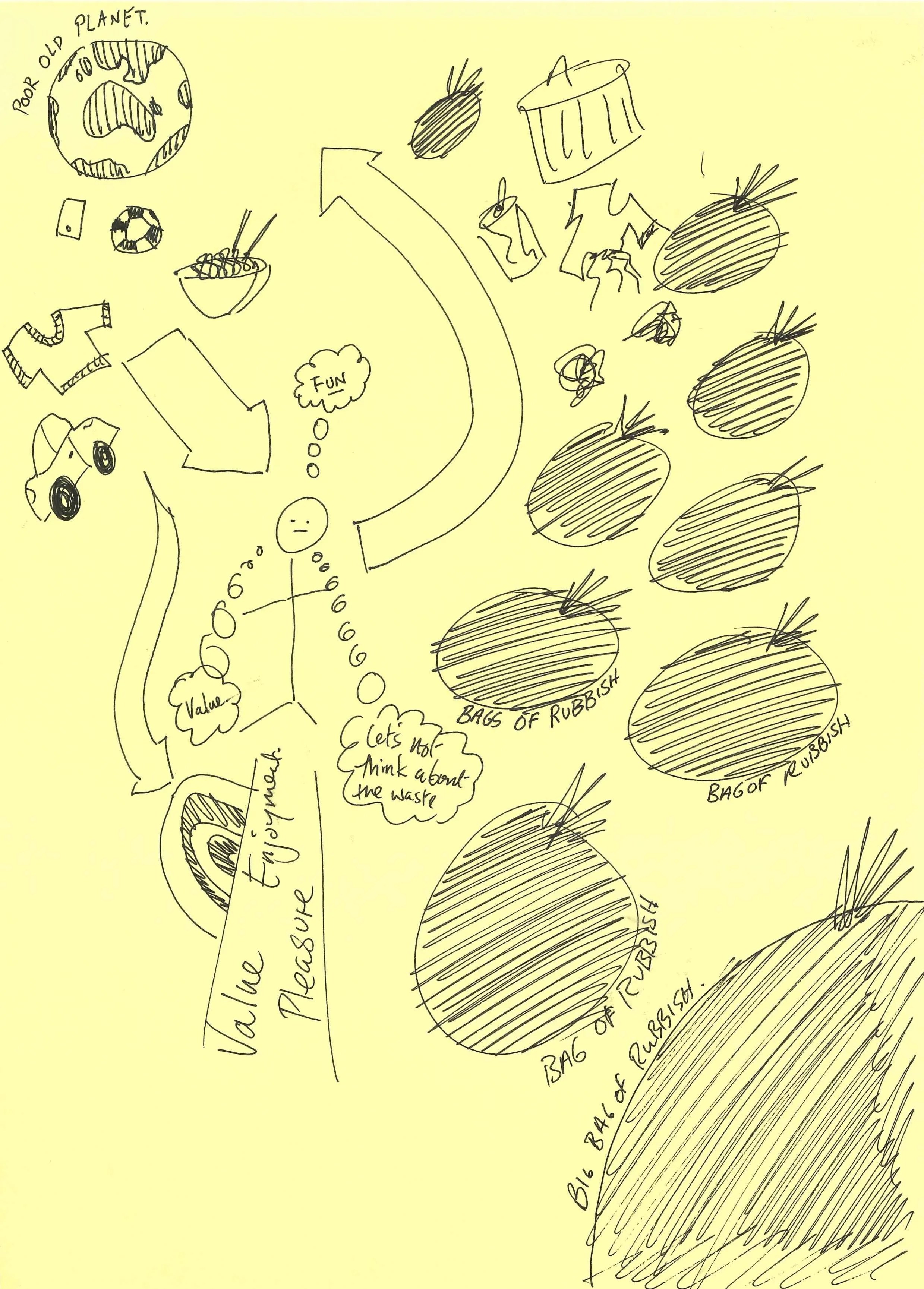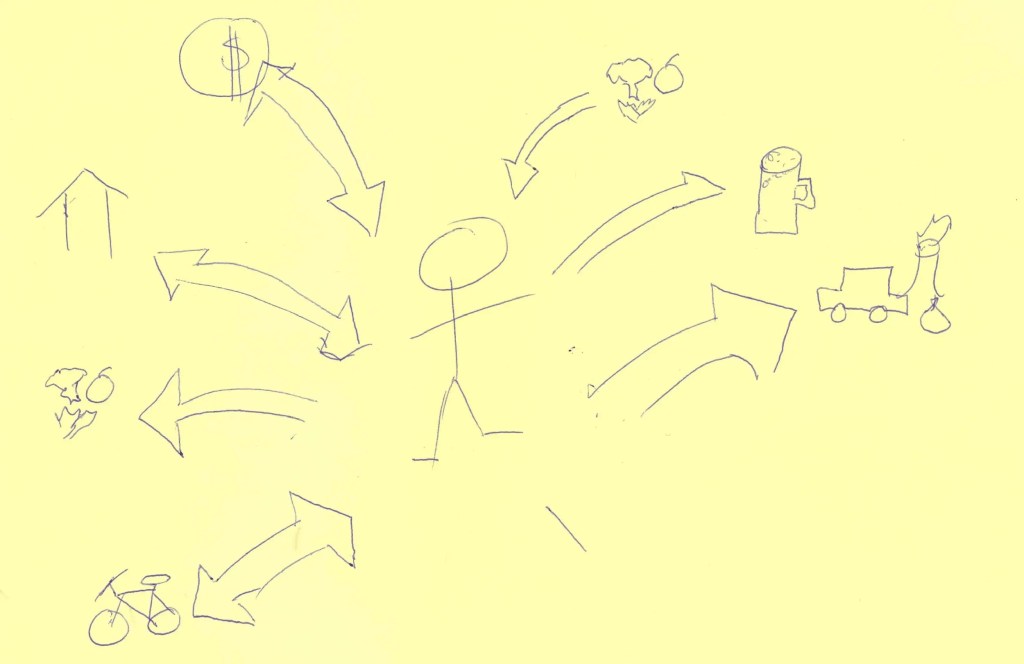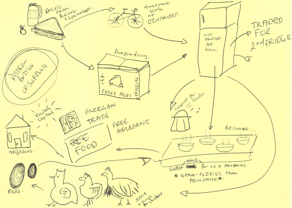 Drawings created by CERES PDC students in my session on economic regeneration strategies, who were asked to visualise their connection to the economy (Habib 2018).